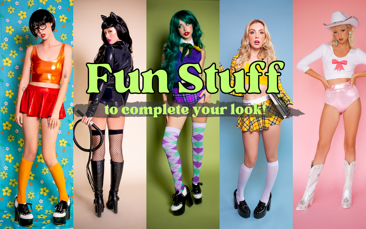 Daisy Corsets, Sock Candy, Ellie Shoes, Buckle Down, Leg Avenue, and Foot Clothes.