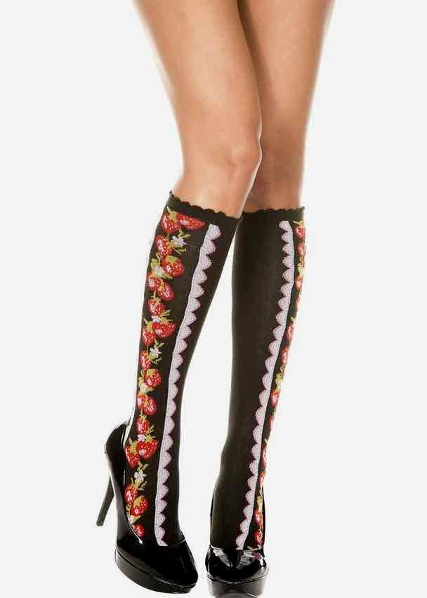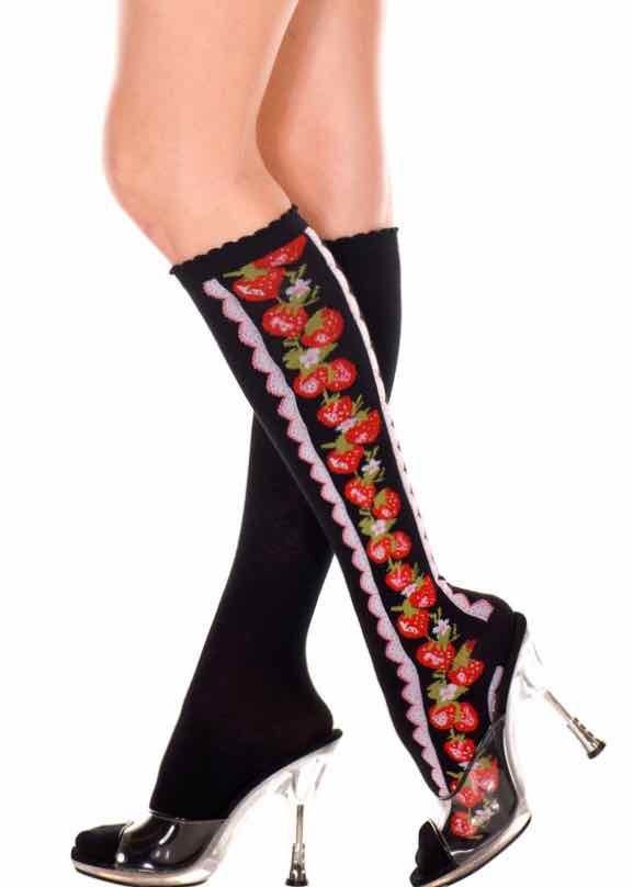 Slip into sweetness with these charming knee-high socks featuring adorable strawberry designs against a classic black backdrop. Perfect for adding a playful pop of coquette...