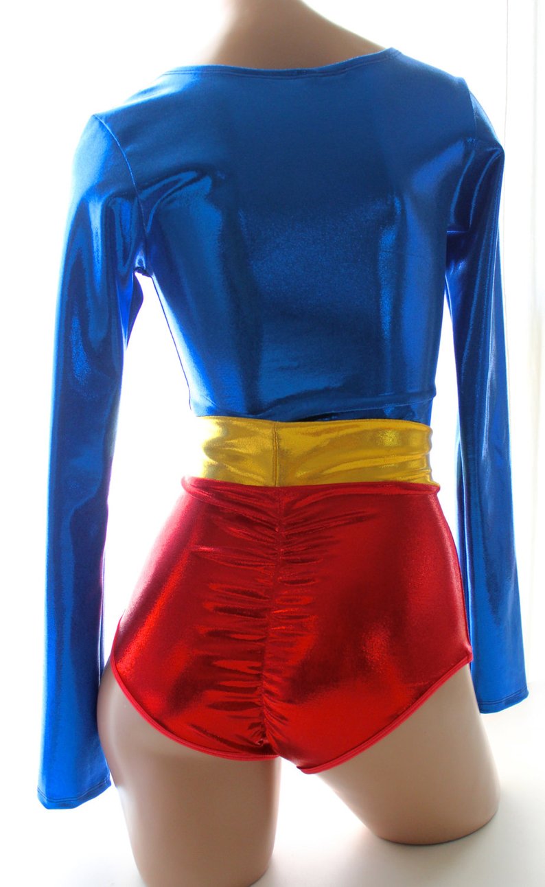 Our fabulously fun Power Heroine costume set has a crop top with a peek-a-boo keyhole for the perfect amount of cleavage. The shorts are high-waisted...