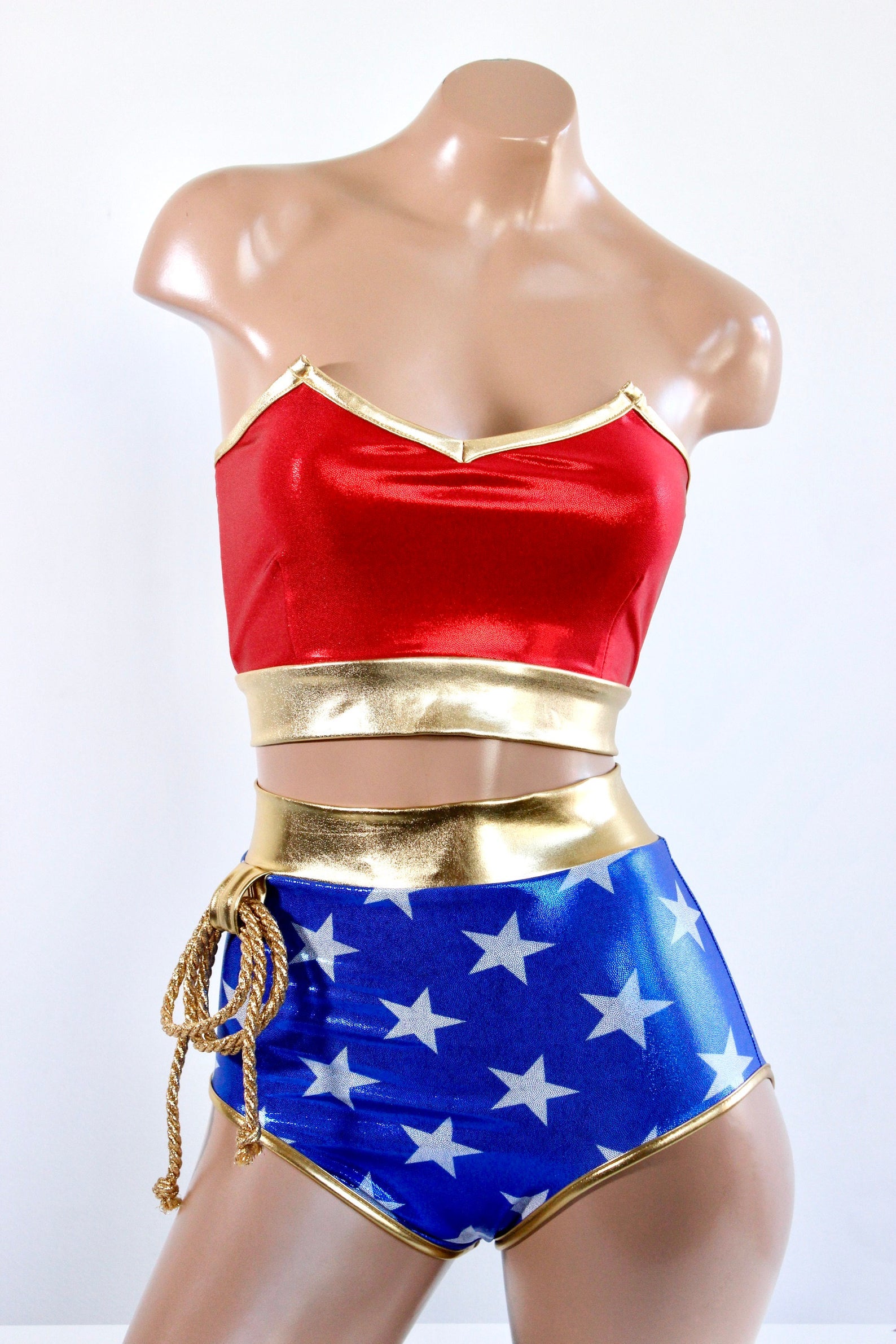 Star Superheroine Crop Tank with Metallic Cheeky Shorts